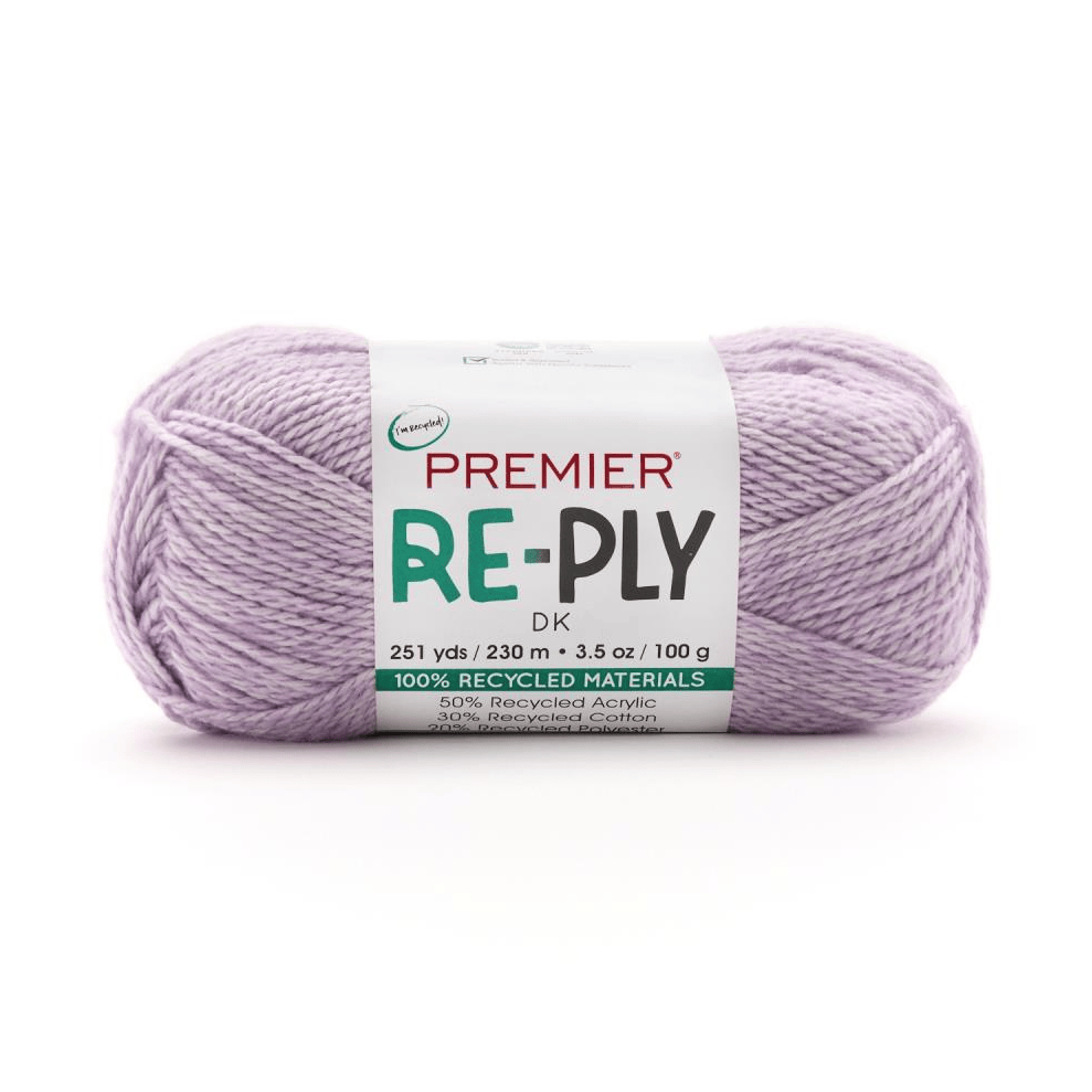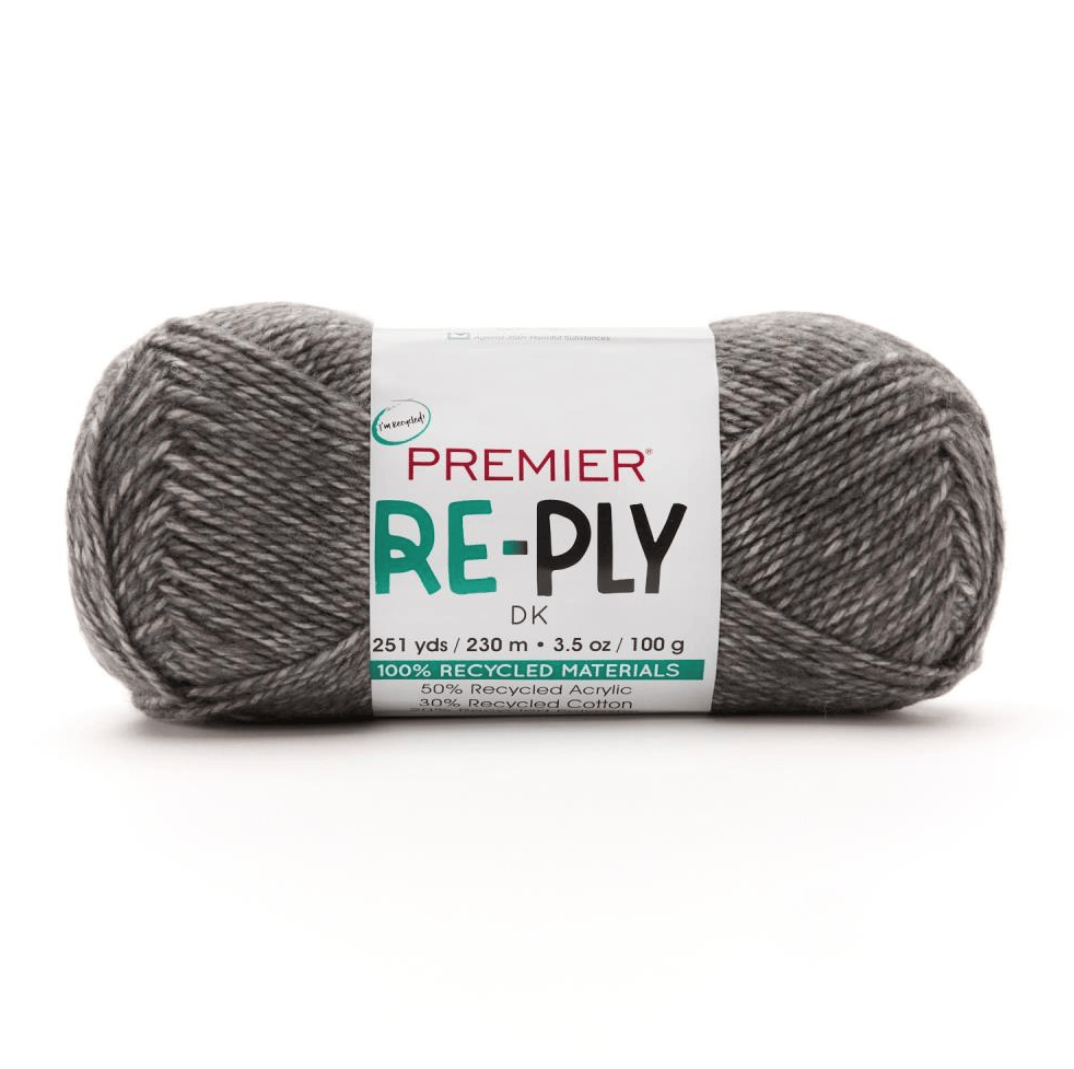A sustainable staple! Made entirely from recycled fibers, all-new Re-Ply DK blends acrylic, cotton, and polyester for the perfect mix of softness, strength, and stitch definition. This eco-friendly yarn comes in 18 heathered shades that deliver a rustic quality to your cozy makes